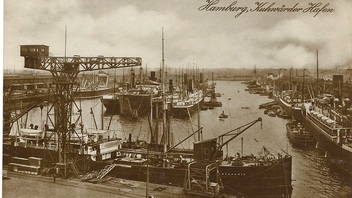 Der Kuhwärder Hafen wurde kurz nach der Jahrhundertwende ca. 1902 angelegt. Die Nordseite gehört zum Werftgelände Blohm & Voss.
