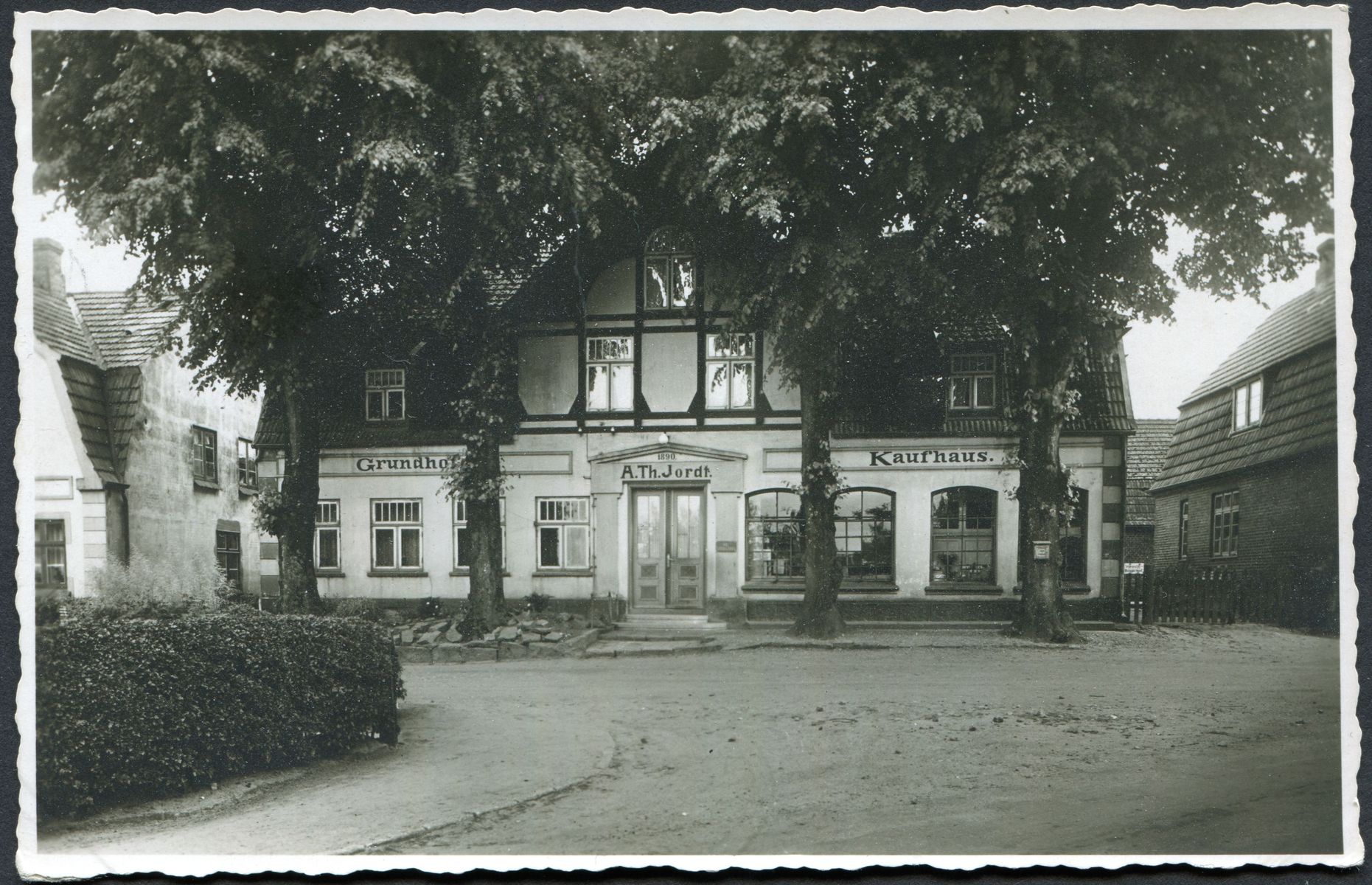 ich zeige heute eine ungelaufene Ansichtskarte aus Grundhof mit der Ansicht des Kaufhauses A. Th. Jordt Inh. Johs. Hansen.