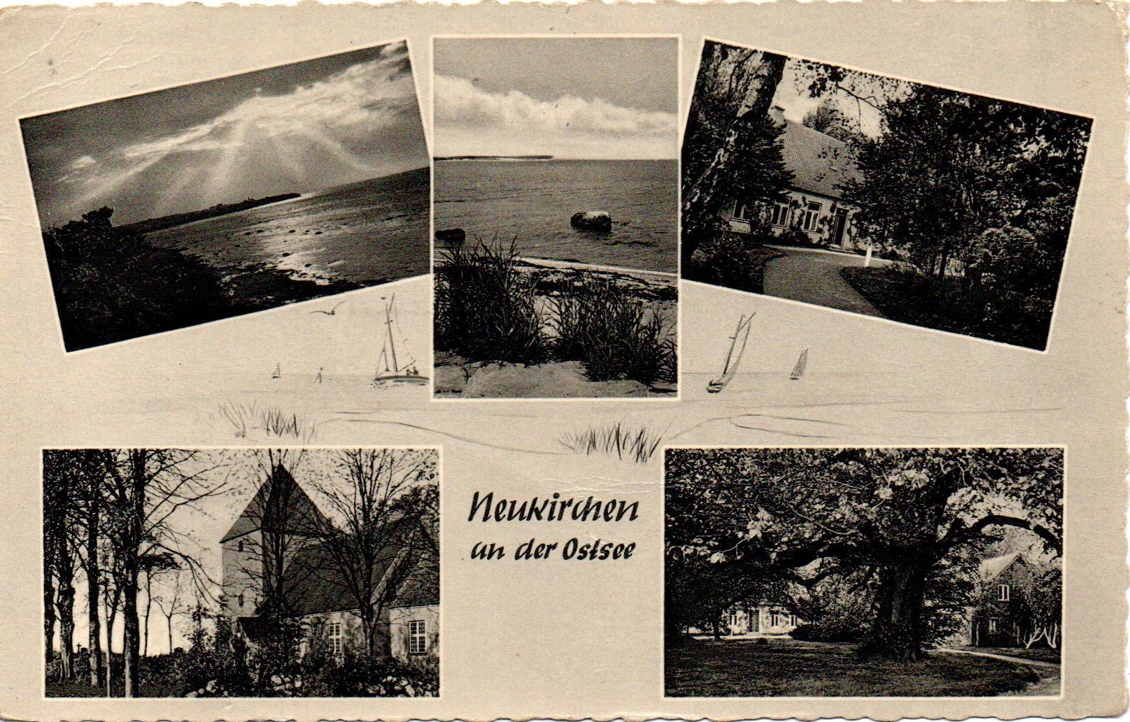 eben gerade die Textseite im Poststelle II thread gezeigt, hier nun die Bildseite. Die Mehrbidlkarte zeigt verschiedene Ansichten aus Neukirchen an der Ostsee, genauer gesagt an der Flensburger Förde. Druckvermerk: Foto-Remmer, Flensburg, Norderhofenden -13.