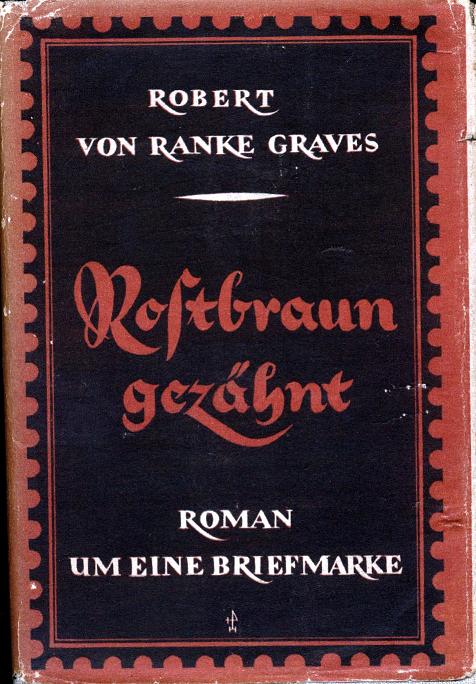 Ich beginne hier mal mit dem Buch „Rostbraun gezähnt“, Roman um eine Briefmarke, von Robert von Ranke Graves aus dem Paul List Verlag in Leipzig aus dem Jahre 1937. Das Buch hat 387 Seiten. Über den Autor steht Näheres in Wikipedia. Er war ein britischer Schriftsteller und Dichter (1895-1985). Das Buch ist eine Übersetzung aus dem Englischen, Originaltitel: Antigua, Penny, Puce. Es geht um einen Streit um die seltenste Briefmarke der Welt, eine nie ausgegebene 1-Penny-Briefmarke aus Antigua. Nimmt man den Schutzumschlag weg, hat das Buch oben links eine schöne eingedruckte Antigua-Briefmarke mit Stempel, eine Art Prägedruck im Einband. Auch der Buchrücken hat ein gezähntes Muster. Bei der abgebildeten Marke handelt es sich wohl um die Antigua Michel-Nr. 2 von 1863, von der es 2 Farben gibt, aber vermutlich geht es im Buch um eine unbekannte dritte Farbabart, die wohl nur im Roman existiert.