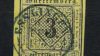 hier eine Württemberg 3 Kreuzer Mi. 2a mit K2-Stempel "Esslingen 6. Feb. 1852"