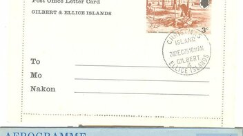 Es wurden 2.296 Ersttagsbriefe produziert wovon 1.975 direkt vom Philatelistischen Büro auf Tarawa verkauft wurden. Der Ersttag der Ausgabe war der 02.06.1969. Aus dem Verkauf wurden die Marken am 31.08.1969 (nach knapp 3 Monaten) genommen. Die relativ hohe Auflage und die niedrigen Nennwerte machen die Ausgabe auch heute noch erschwinglich (niedriger einstelliger Betrag). Dabei werden postfrische und gestempelte Ausgaben durch den Michel gleich bewertet. Der niedrige Katalogwert lässt sich vielleicht auch auf das Design der Marken schieben. Das ist zwar jetzt meine persönliche Meinung, aber ich finde andere Ausgaben aus der Zeit wesentlich schöner. Ist möglich das es Motivsammler ähnlich sehen und somit den Preis ebenfalls niedrig halten. Was gibt es jetzt noch zur Ausgabe zu sagen? Echter Bedarf der Ausgabe ist eher selten zu finden. Ein Ersttagsbrief sollte einem anhand der Verkaufszahlen schon mal unterkommen. Ich kann leider aber bis jetzt keinen zeigen. Einen Brief habe ich jedoch gefunden, also Zeit etwas zu zeigen: