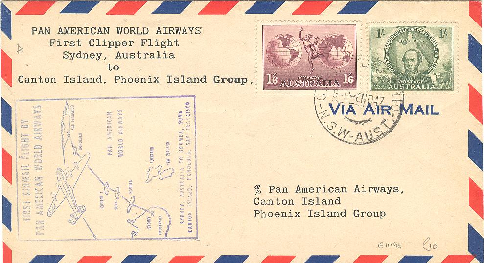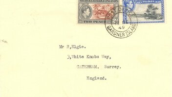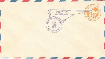 Ein Brief vom Erstflug von Neuseeland (Stempel Auckland 28.12.1937) nach den USA (Brief nach England und Transitstempel San Francisco 06.01.1938). Zwischenstop war u.a. Kingman-Riff. Roter Stempel: "New Zealand - U.S.A. First Air Mail December 1937". Cachet Trans Pacific Airmail Service natürlich mit dem aufgeführten Zwischenstop Kingman Reef.