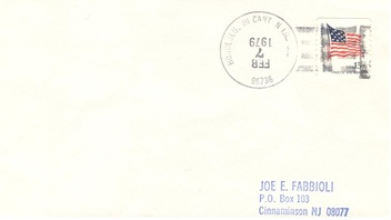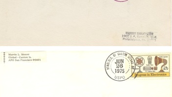 3. Der andere Brief trägt neben einem Cachet „U.S.S. AVOCET National Geographic Society Solar Eclipse Cruise to the Phoenix Islands“ in blau, unten links ebenfalls den Aufdruck „U.S.Navy National Geographic Eclipse Expedition“. Der Stempel ist identisch mit Brief 2.