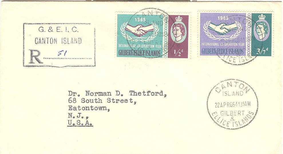 3. Ein R-Brief von Nukulaelae (Ellice-Inseln) nach Großbritannien portogerecht (8c), frankiert in Mischfrankatur, jedoch nach altem Tarif. Zum Zeitpunkt der Abstempelung (Vernon Typ 66 Nukulaelae 14.04.1972) war der Preis eigentlich von 8c schon auf 17c gestiegen. Naja auf den äußeren Inseln war das mit der Tarifänderung wohl noch nicht angekommen. Außerdem findet man noch einen R-Stempel R25 (Nukulaelae) auf dem Brief.
