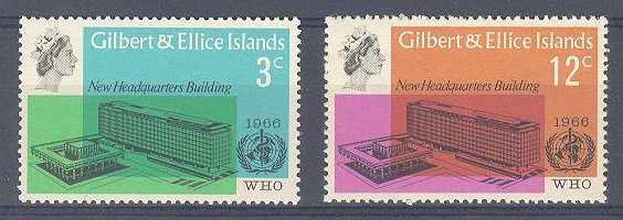 Im Jahre 1966 wurde das 20-jährige Bestehen der UNO-Organistation UNESCO in einer Omnibusausgabe von vielen britischen Kolonien gewürdigt. Auch die Gilbert und Ellice Inseln beteiligten sich daran mit der Ausgabe von 3 Werten (5c, 10c, 20c). Die Motive der drei Marken zeigen die drei Hauptgebiete (Erziehung, Wissenschaft, Kultur) mit der sich die UNESCO beschäftigt. Für das moderne Design zeichnete Jennifer Toombs verantwortlich. Den Druck erledigte die Firma Harrisons auf Papier mit Wasserzeichen 3 im Offsetdruck. Die Perforation der Marken beträgt 14.