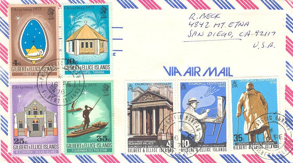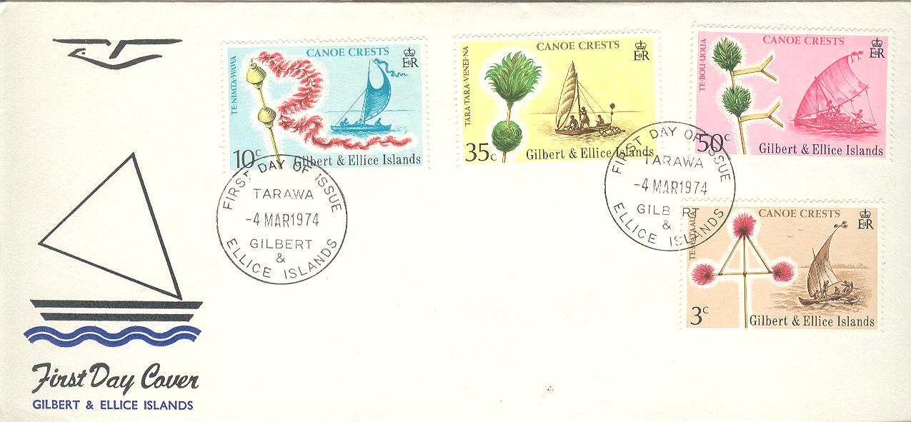 heute möchte ich gern die letzten beiden Ausgaben aus dem Jahre 1975 und damit auch die letzten Ausgaben der Gilbert & Ellice Inseln vorstellen. Mit dem 31.12.1975 wurde das Briefmarkenland der Gilbert & Ellice Inseln postalisch zu Grabe getragen und es traten zwei neue Briefmarkenländer auf den Plan, Tuvalu (vormals die Ellice-Inseln) und die Gilbertinseln (vormals Gilbert-Inseln, Phoenix-Inseln und Linien-Inseln).