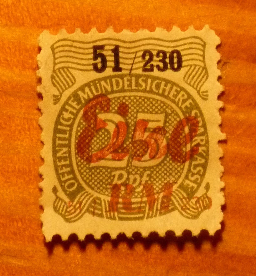 Könnte auch eine Gebührenmarke der Sparkasse gewesen sein, eine Art Vignette. Wechselsteuermarke glaube ich nicht, die gab`s bei der Post zu kaufen.