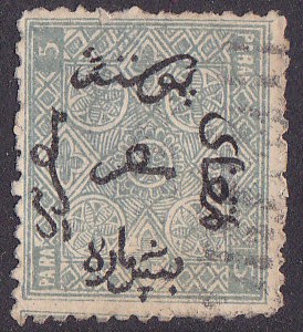 ich hab es geahnt, bei der 1. Ausgabe des Vizekönigreichs kann ich nichts beitragen. Immerhin habe ich die 20 Para Marke der 2. Ausgabe aus dem Jahr 1867. Diese Marke haben bereits das Wz. 2, den Stern über dem Halbmond. Dieses Wasserzeichen wurde während der ganzen weiteren Zeit des türkischen Vizekönigreichs verwendet. dieses hatte bis zum 17.12.1914 Bestand.