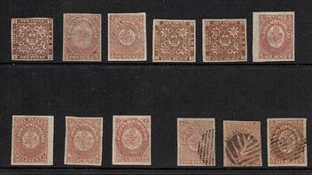 Hier die Ausgabe 1861 ungebraucht und einige wenige gestempelte Exemplare.