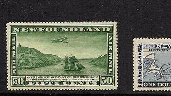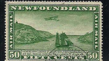 Es geht um die Überdruckmarke: Air Mail DE PINEDO 1927 vom 18. Mai 1927 (SG 163: ungebraucht 28.000 brit. Pfd., gestempelt 8.000 brit. Pfd./ Michel Nr. 128: ungebraucht € 40.000, gestempelt € 10.000) Sie ist gerade mal in einer Auflage von 300 Stück hergestellt worden. Eine Abbildung des Druckauftrages findet man im Buch von Harmers "Newfoundland Air Mails"