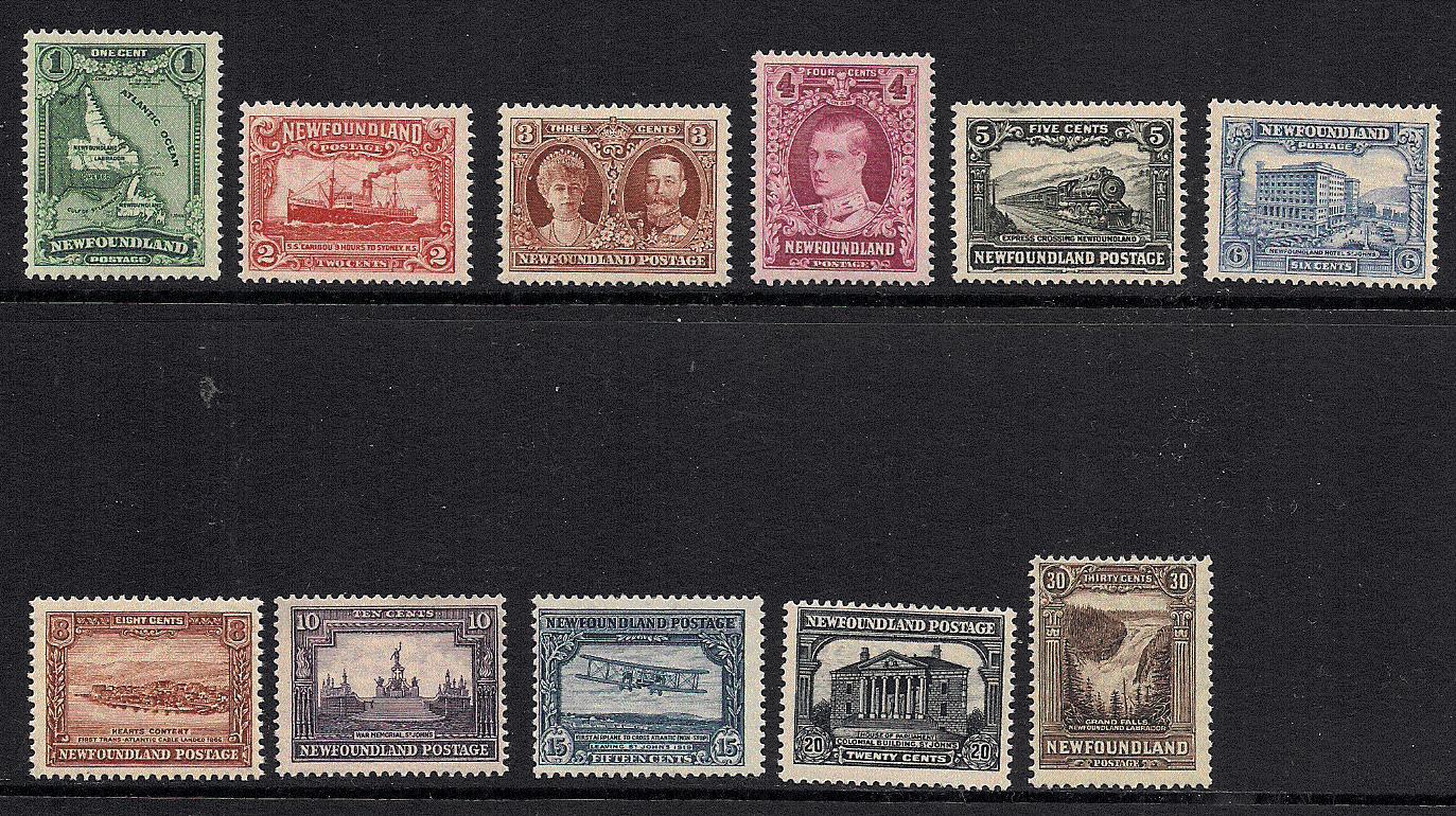 im Sommer 1927 wurde vom neufundländischen Postministerium eine neue Briefmarkenserie in Auftrag gegeben, die die vorhergehende Serie ablösen sollte. Die Markenvorräte gingen ohnehin zur Neige. Neufundland hatte gerade aufgrund eines Schiedsspruches des Privy Councils enorme Gebietszuwächse in Labrador errungen. Die 1 cent Marke zeigt das Dominion Newfoundland in den neuen Grenzen. Die Werte kommen mit unterschiedlichen Zähnungen vor, einige sowohl mit Kamm- als auch Linienzähnung. Die 4 cent Marke kommt in zwei Farbtönen (nach SG: mauve und rose-purple) vor.