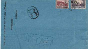 Auslandsbrief in die USA aus Post Blandfort nach Jostonia (?) Ohio. Portogerecht mit einer 1c Ressources Reissue und einer 4c Princess Elizabeth Marke frankiert. Briefporto in die USA 1932-1949 5c für die erste Gewichtsstufe.