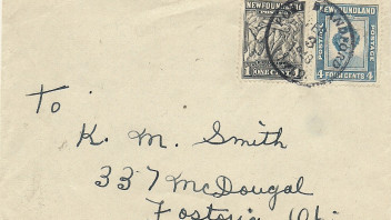 Dann ein Inlandsbrief aus St. John's nach Elliston an den bereits in einem früheren Beitrag erwähnten Reverend W.H. Dotchon. Das Porto für Inlandsbriefe betrug 2c von 1906 bis 1918.