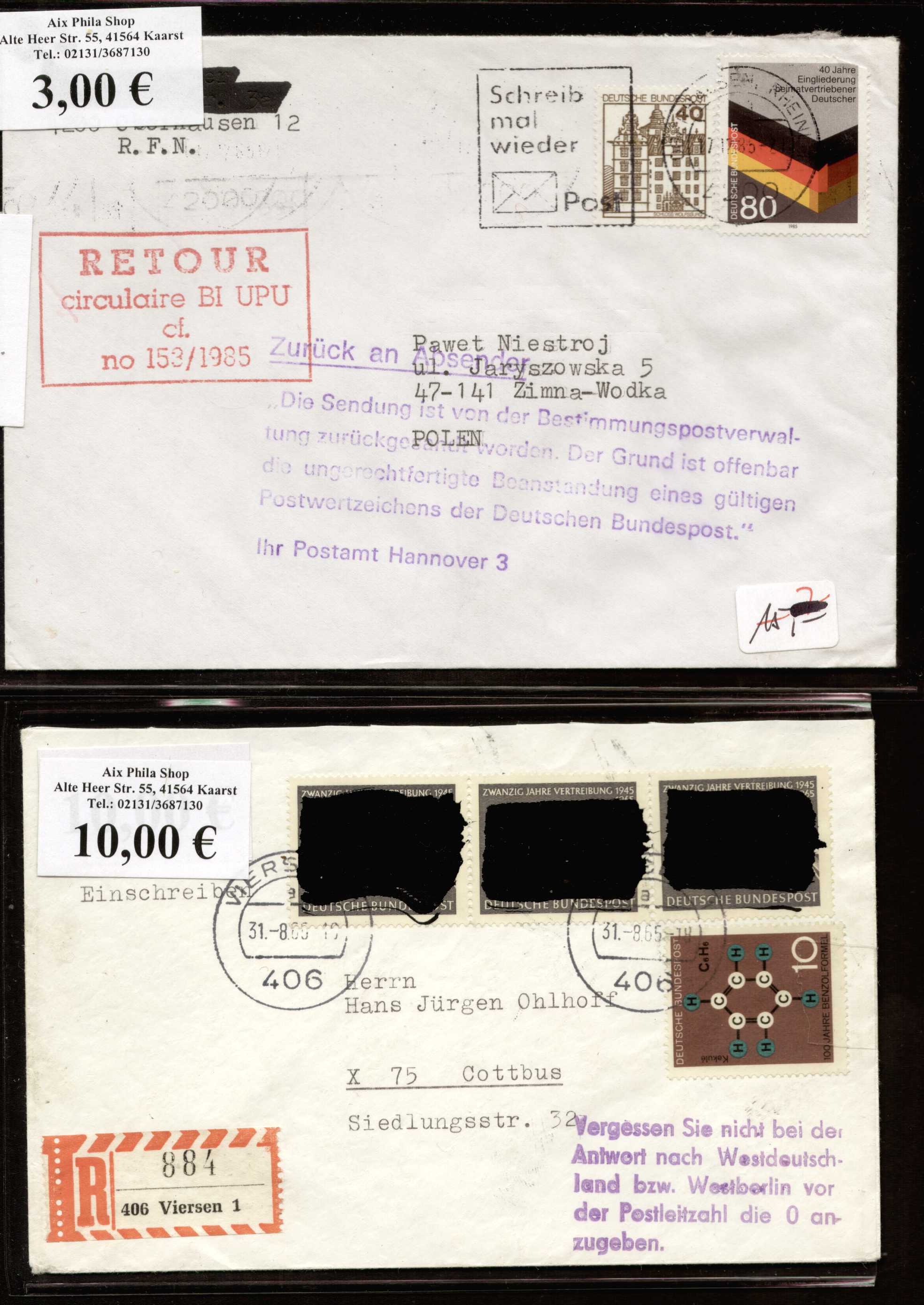 Ist der untere aus dem ersten Set echter Bedarf, oder absichtlich so frankiert nach Polen gegangen um die Rückweisung zu provozieren?