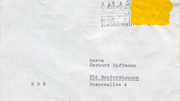 ich möchte mein Umschlag zum Thema "Postkrieg zwischen der DDR und der BRD" hinzufügen. Der Brief wurde an den Absender zurückgesendet wegen die Beanstandung des Postwertzeichens der Bundespost (Michel Nr. 1265 von 1985).