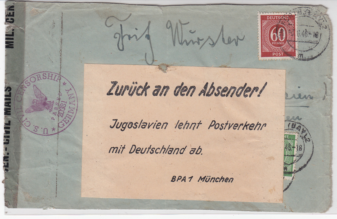 Der Brief aus Fürth (3.6.46) wurde zurückgewiesen.