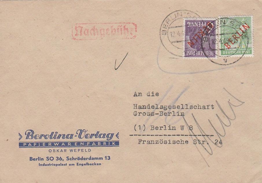 3. Der Brief ging in die DDR, was die Rückseite beweist (die ich hier unterschlagen hatte), da dort "Empf unbekannt" vom ausliefernden Postbeamten handschriftlich hinterlassen wurde