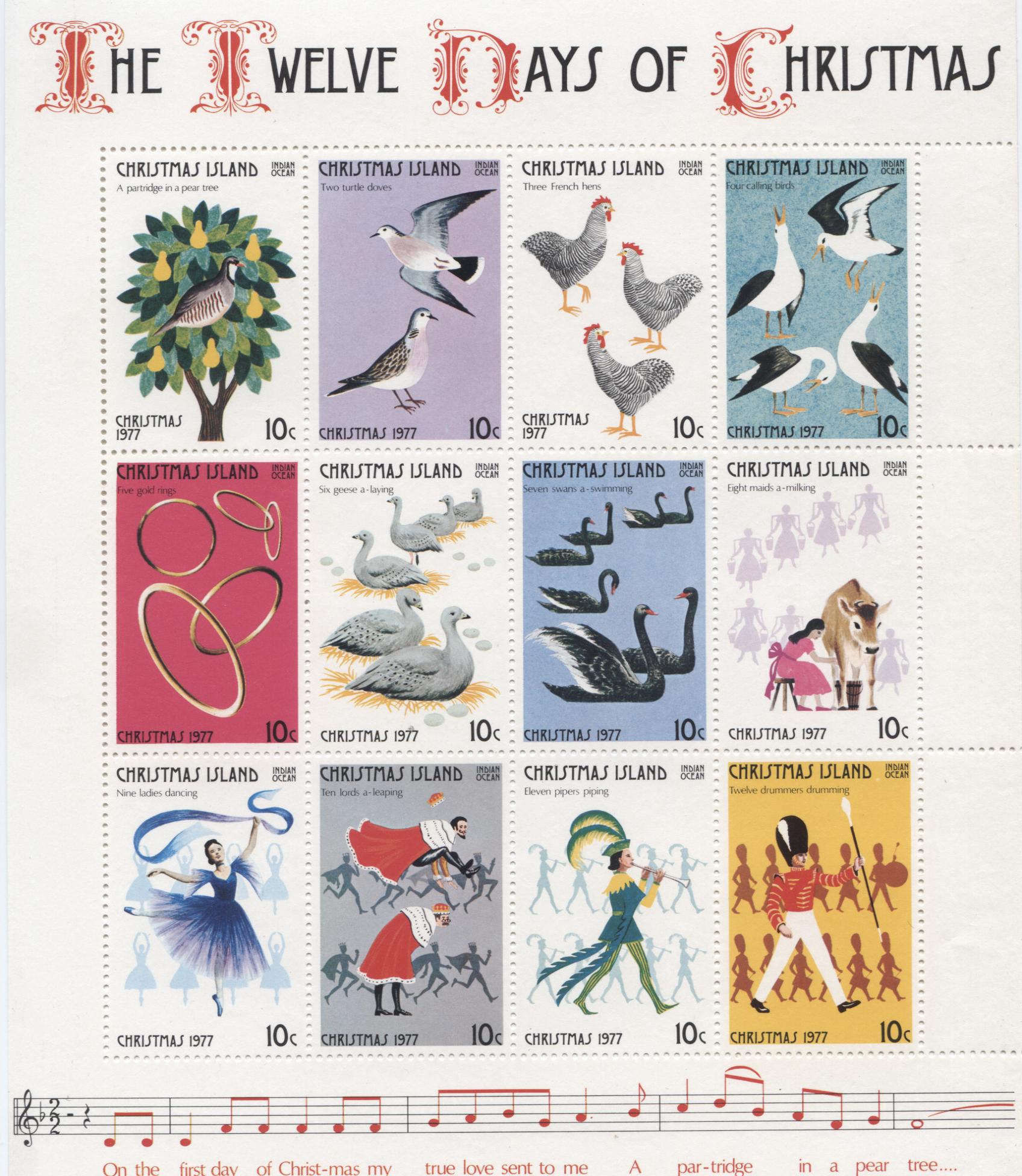 hier ein Block von den Weihnachtsinseln mit 12 Marken zu je 10 Cent.