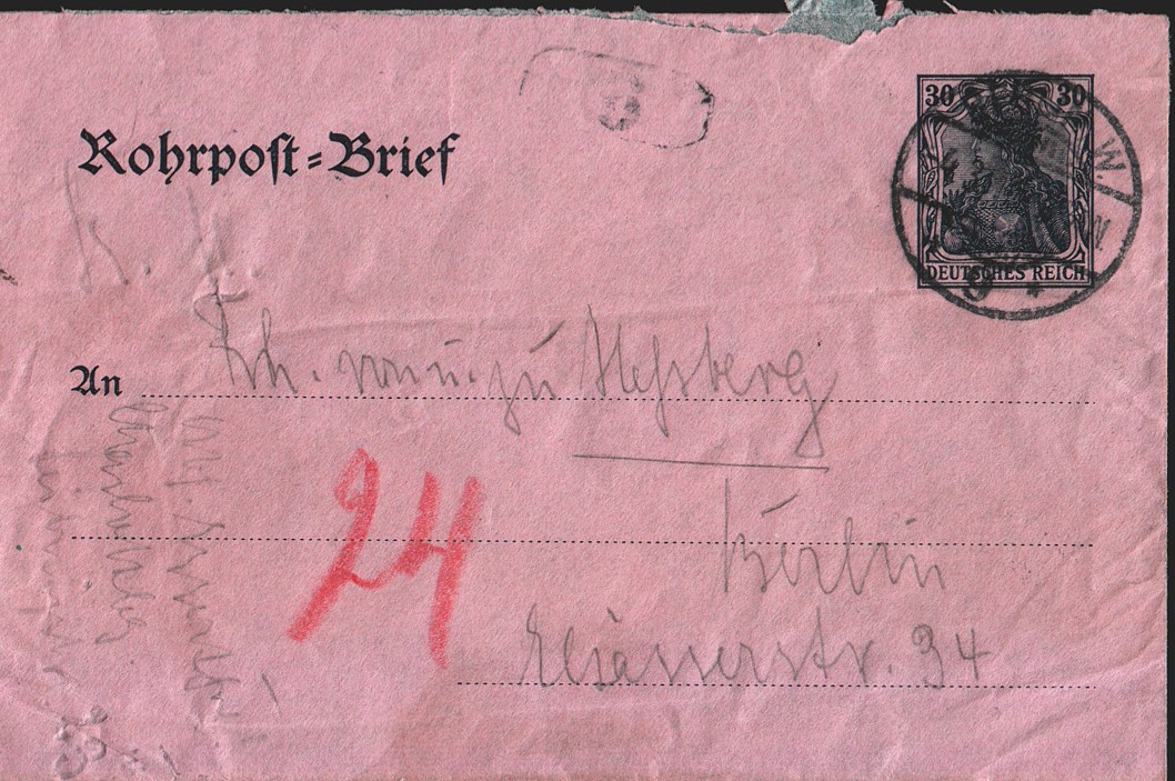 Beim Tausch bekam ich einen Rohrpost Brief von 1910 bekommen, an den Freiherren von und zu Heßberg, toll, das Rittergeschlecht gibts tatsächlich heute noch, aber wichtiger ist, was soll ich von diesem Couvert halten, es ist sicher schön, aber doch sicher nicht selten und wahrscheinlich mäßig im Wert.