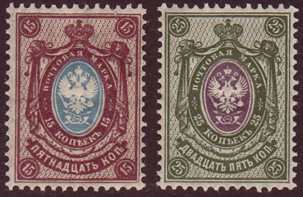 Man beachte dabei die Erhaltung: 10 und 30 Kop. mit leichten Zahnverkürzungen und die 10er zusätzlich mit Fingerabdruck auf der Gummierung!