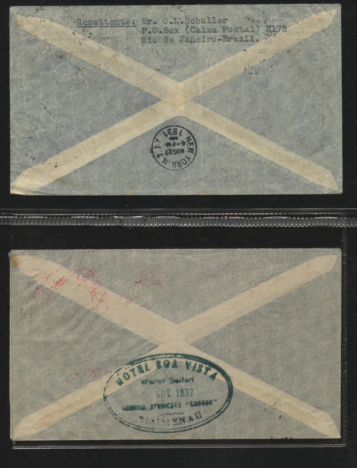 Rückseite mit Condor Vignette und grünem Zeppelin Stempel.