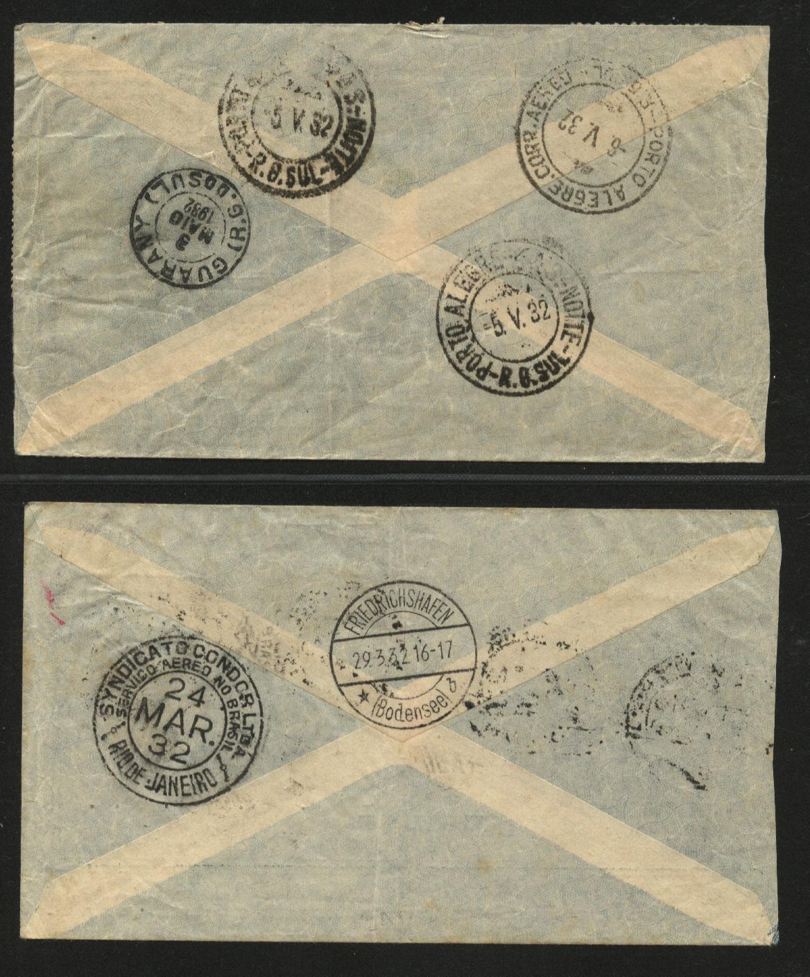 Rückseite mit Condor Vignette und grünem Zeppelin Stempel.