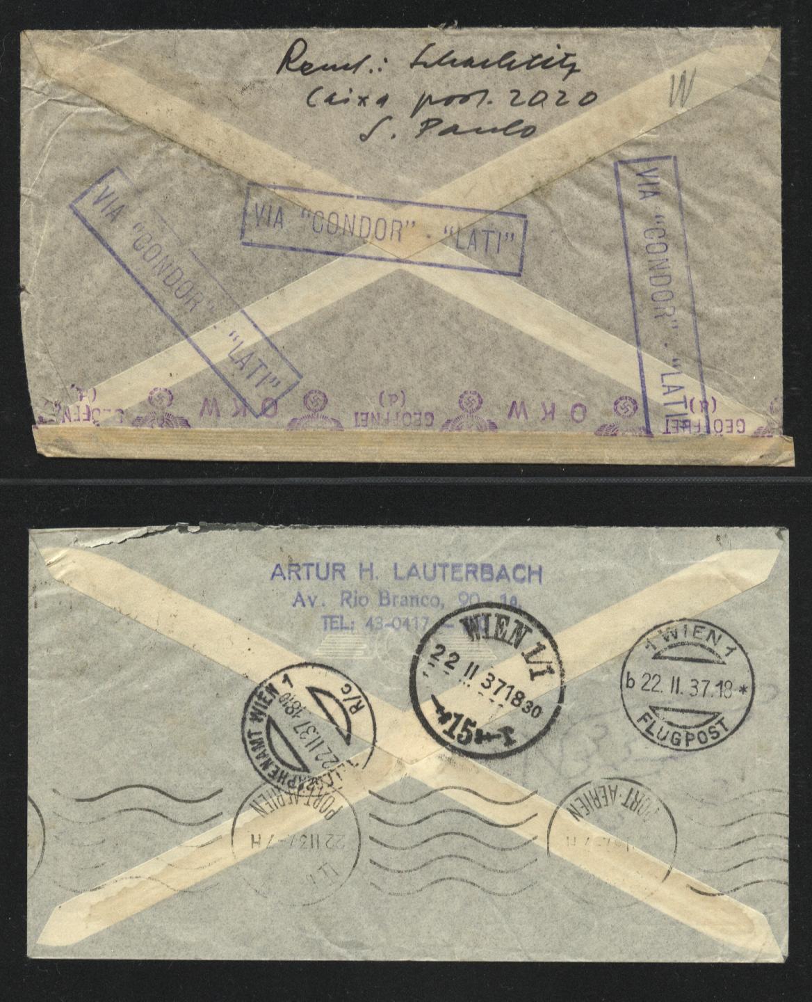 Rückseite mit Condor Vignette und grünem Zeppelin Stempel.