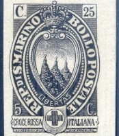 Nein, das ist eine Zuschlagsmarke. Die 5 Centesimi Zuschlag sind für das italienische Rote Kreuz.