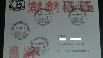 2. Brief vom 8.8.1988, abgestempelt um 8:00 Uhr in 8888 Heiligkreuz (CH)