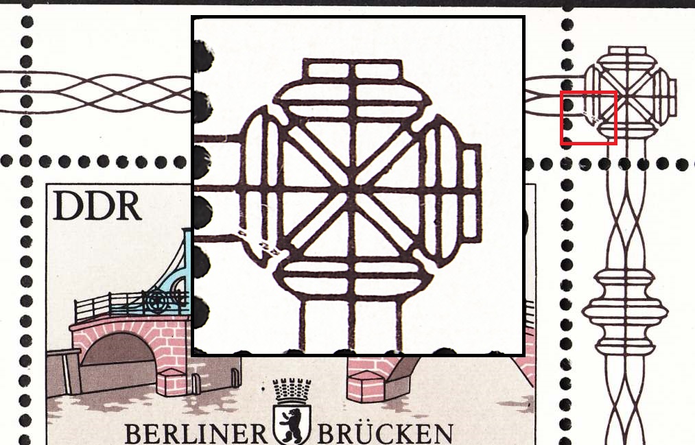 Heute mal eine 2793 mit einer schönen Putze lrechts oben im Oberrandornament des Kleinbogens