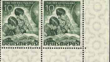 Ein schöne Eckrandeinheit der SBZ Mi.: 196 mit einem Abklatsch der Urmarke Gemeinschaftsausgabe Mi.: 957.