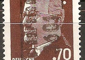 DDR nimmt ja hier Überhand... Hier mal was aus Berlin: Eine Nr. 80 mit Quetschfalte, die sich fast durch die komplette unterste Markenreihe des Bogen zieht.