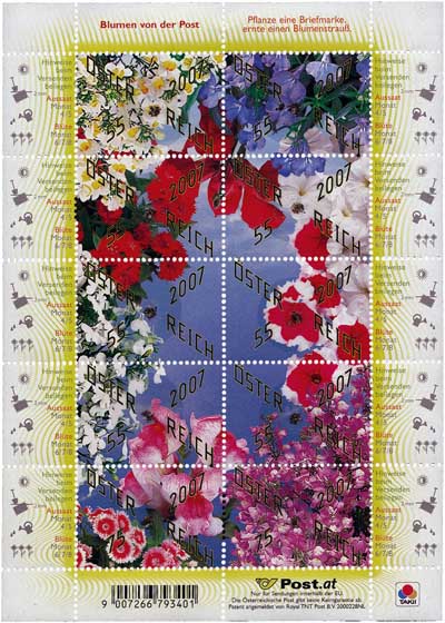 Am 2. Mai 2007 sollte in Österreich ein Kleinbogen Blumengrüße erscheinen, eine Besonderheit war dabei, dass dieser Bogen einen aufgebrachten Blumensamen enthielt (wohl auf jeder Marke einen?), der unter einer Folie steckte. Hinweise für die Aussaat und die Blüte waren am Bogenrand neben jeder einzelnen Marke beschrieben. Das Ganze stand unter dem Motto: „Pflanze eine Briefmarke, ernte einen Blumenstrauß“.