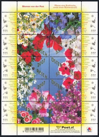 Am 2. Mai 2007 sollte in Österreich ein Kleinbogen Blumengrüße erscheinen, eine Besonderheit war dabei, dass dieser Bogen einen aufgebrachten Blumensamen enthielt (wohl auf jeder Marke einen?), der unter einer Folie steckte. Hinweise für die Aussaat und die Blüte waren am Bogenrand neben jeder einzelnen Marke beschrieben. Das Ganze stand unter dem Motto: „Pflanze eine Briefmarke, ernte einen Blumenstrauß“.
