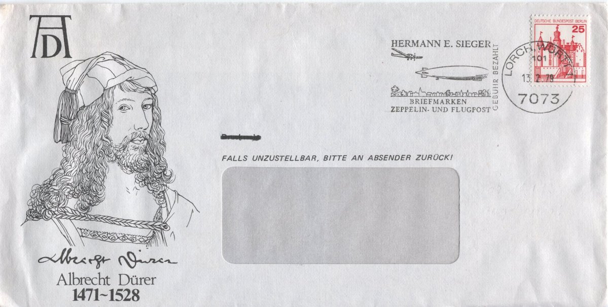 Am 11.01.1979, dem Erstausgabetag des 25 Pf Wertes der Dauerserie Burgen & Schlösser verschickte die Firma Sieger die erste deutsche Massendrucksache.