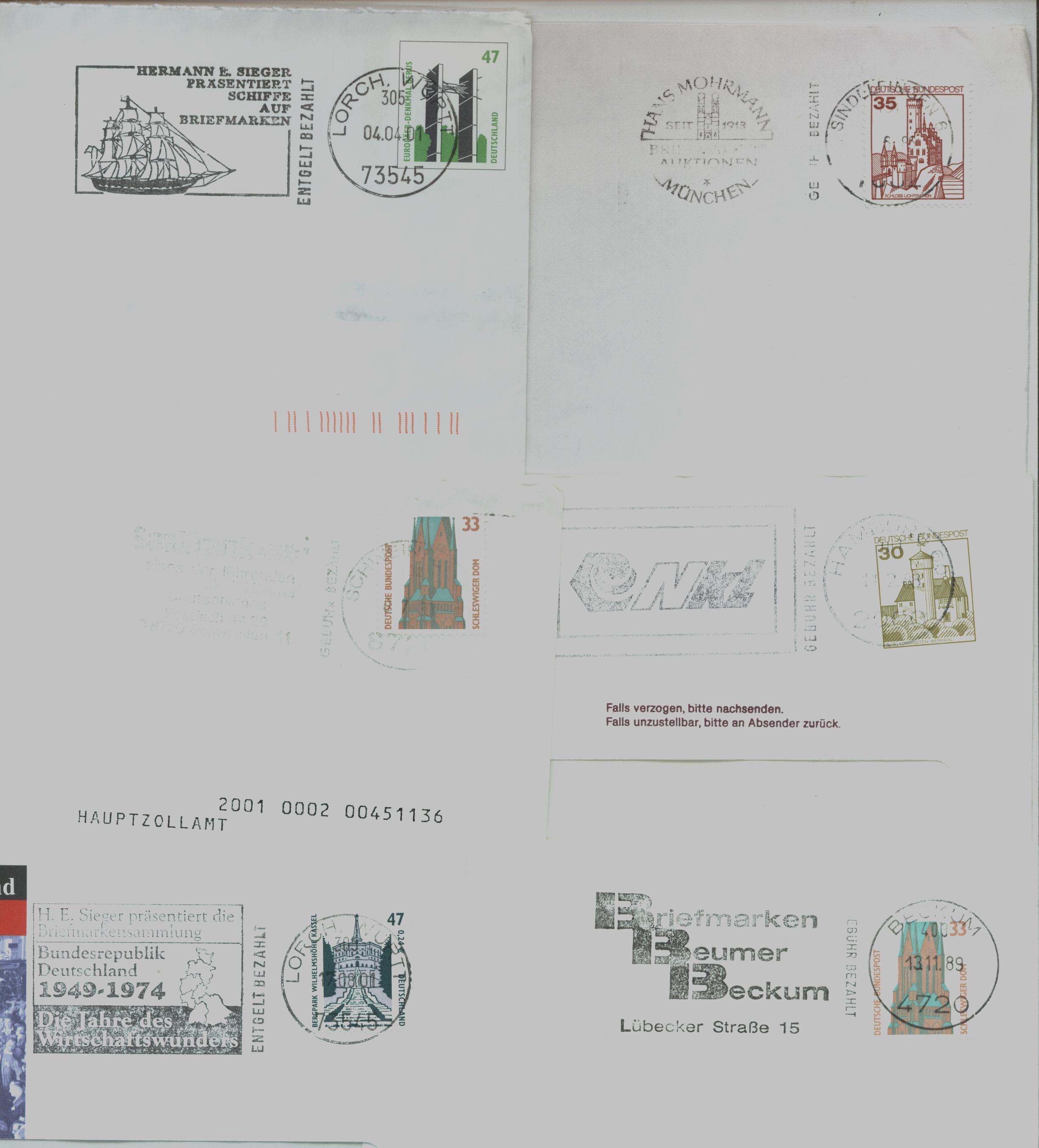 Ich habe da auch noch ein paar Werbesendungen gefunden, auch mit Marken, die vom Markenspender aufgeklebt und anschließend sofort durch den Freistempler in schwarz ( anstatt rot-blau ) entwertet wurden.