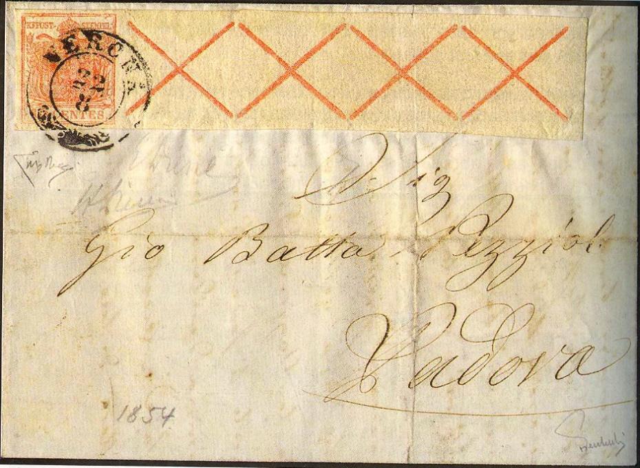 Anbei noch ein Attest zu einer Marke mit Andreaskreuz sowie ein Brief mit anhängenden 4 Andreaskreuzen.