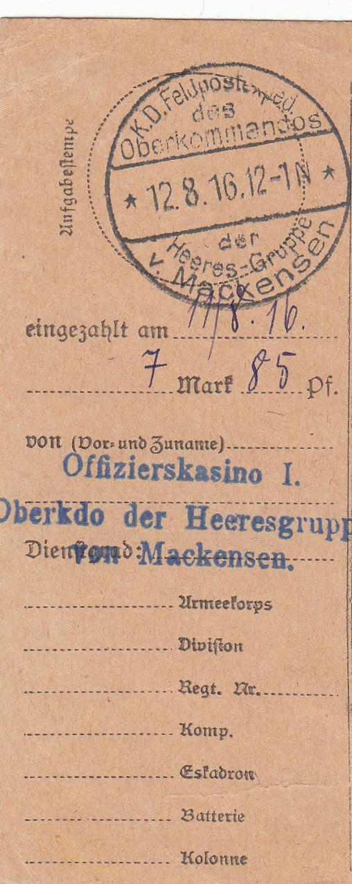 Die Feldpostkarte stammt vom 1. K.B. Armmeekorps. Der Stempel zeigt als Zeichen 2 Rauten. Lfd. Nr. 195 .-25