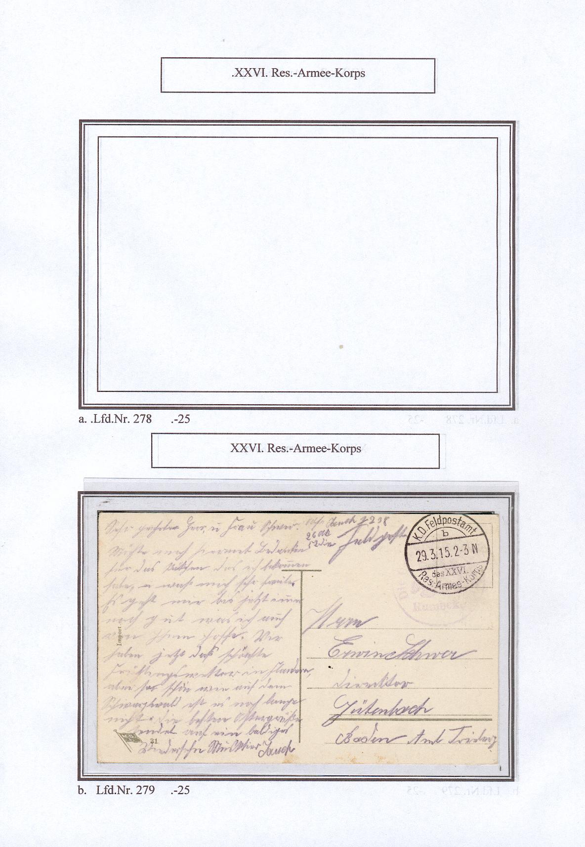 Feldpostkarte des XXVI. Res.-Armee-Korps vom 29.3.1915 lfd.Nr. 279