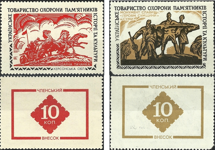 Im Bild oben linke Marke: монумент "легендарна тачанка" heißt: Monument Legendärer Tatschanka (siehe: https://de.wikipedia.org/wiki/Legend%C3%A4re_Tatschanka)