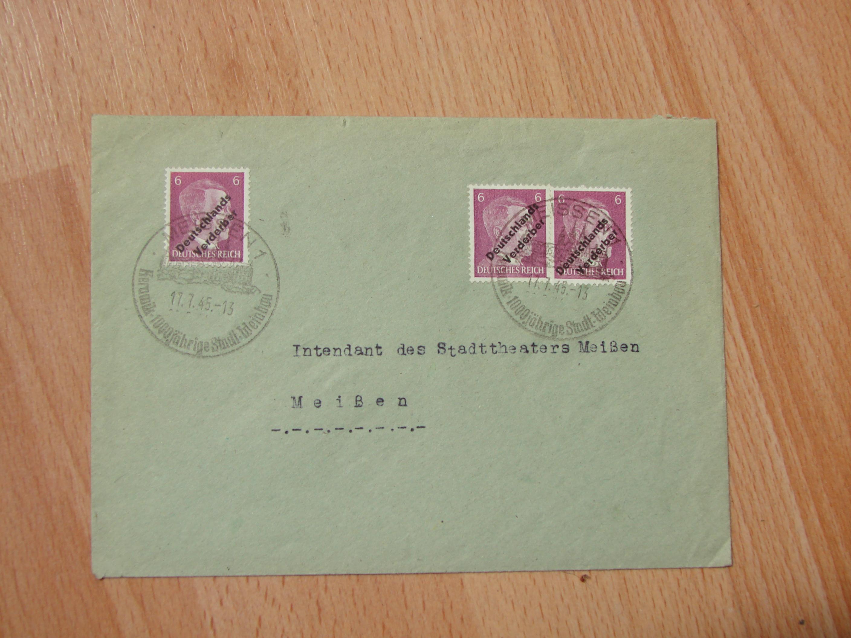 ich habe einen Brief geerbt. Auf diesem Brief sind 3 Briefmarken von Adolf Hitler in Lila für 6 Pfennig.