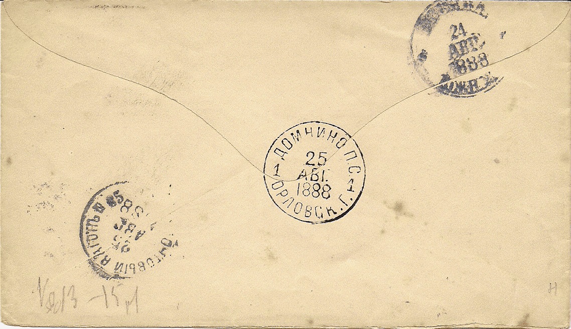 • St. Petersburg, Nr. Stempel 7, Brief nach Domnino, 1888, Rückseite.jpg