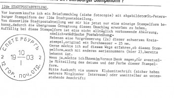 Seltene St. Petersburger Stempelform? Wer kann helfen (12.Stadtpostabteilung)
