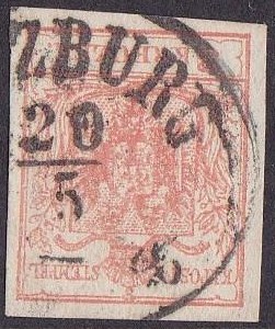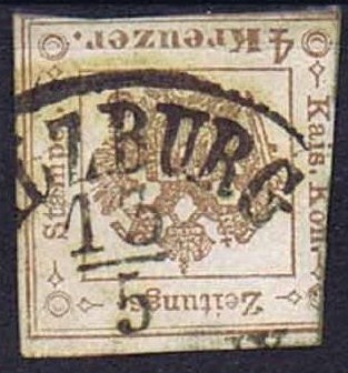 B) MARKE: ANK Zeitungsstempelmarke 4 (1858) - Wert: € 1600 (a)braun) oder € 1800 (b)dklbraun)