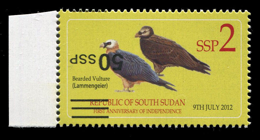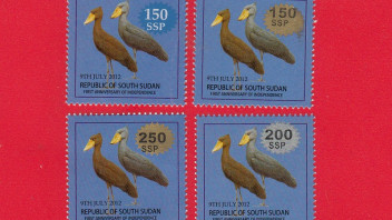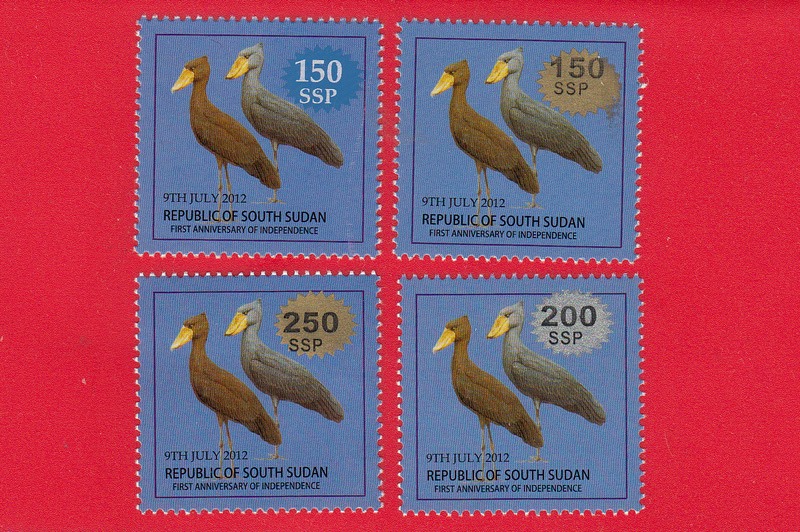 • Südsudan Vögel Überdrucke auf 1 SSP.jpg