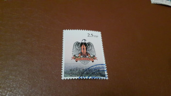 Die Entwertung auf der Wappenmarke ist schon eigenartig. Unten sieht man noch das blaue Fragment eines Stempels, auf der linken Seite ein rotes Gekritzel mit Kugelschreiber, das wohl "cancelled" bedeuten soll. Ob das Geschmiere jetzt vom Postminister vom Südsudan stammt oder vom Verkäufer, wer will das später noch prüfen? So kann man Briefmarken auch "aufwerten", da gestempelte Exemplare ja eigentlich gar nicht vorkommen dürfen und deshalb "viel, viel seltener" sind als postfrische.