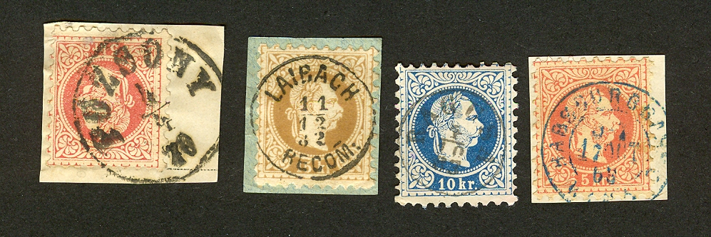 Bei der 2. Briefmarke handelt es sich um eine Abstempelung von Laibach. Vielleicht könnt Ihr mir etwas über die Stempelart bzw. dessen Bewertung sagen!