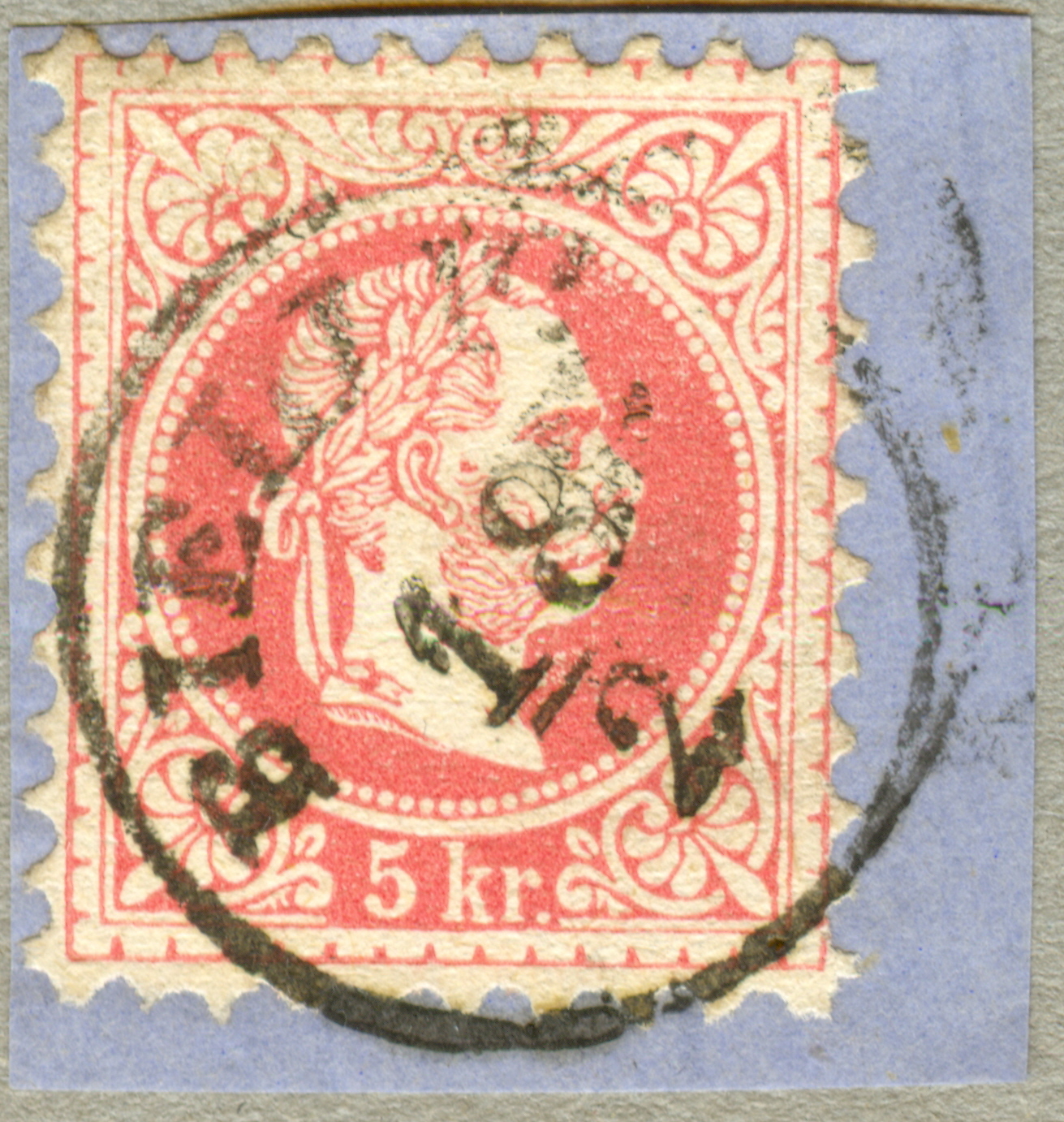 Bei der ersten Briefmarke ist der Orts- oder Stadtname POZSONY 4/4/1870 (PUZSONY ()angebracht, sofern ich ihn richtig erlesen habe, leider konnte ich in meiner Spezialliteratur v. Klein nichts finden. Auf der Rückseite des Briefstückes wurde die Nr. 6163c vermerkt ???)