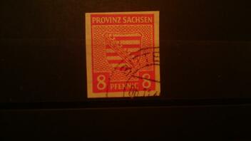 Hier scheint mal wieder eine echte Rarität bei Ebay gelandet zu sein, Provinz Sachsen Wappenzeichnung 8 Pfennig rotorange geschnitten mit Wasserzeichen Y Stufen steigend, gestempelt in Bitterfeld, zur Sicherheit gleich mit 2 Attesten. Bei einem aktuellen Michelwert von 9.000,- EUR liegt der Preis zurzeit noch bei 505,55 EUR nach 10 Geboten und 4 Tagen Laufzeit.